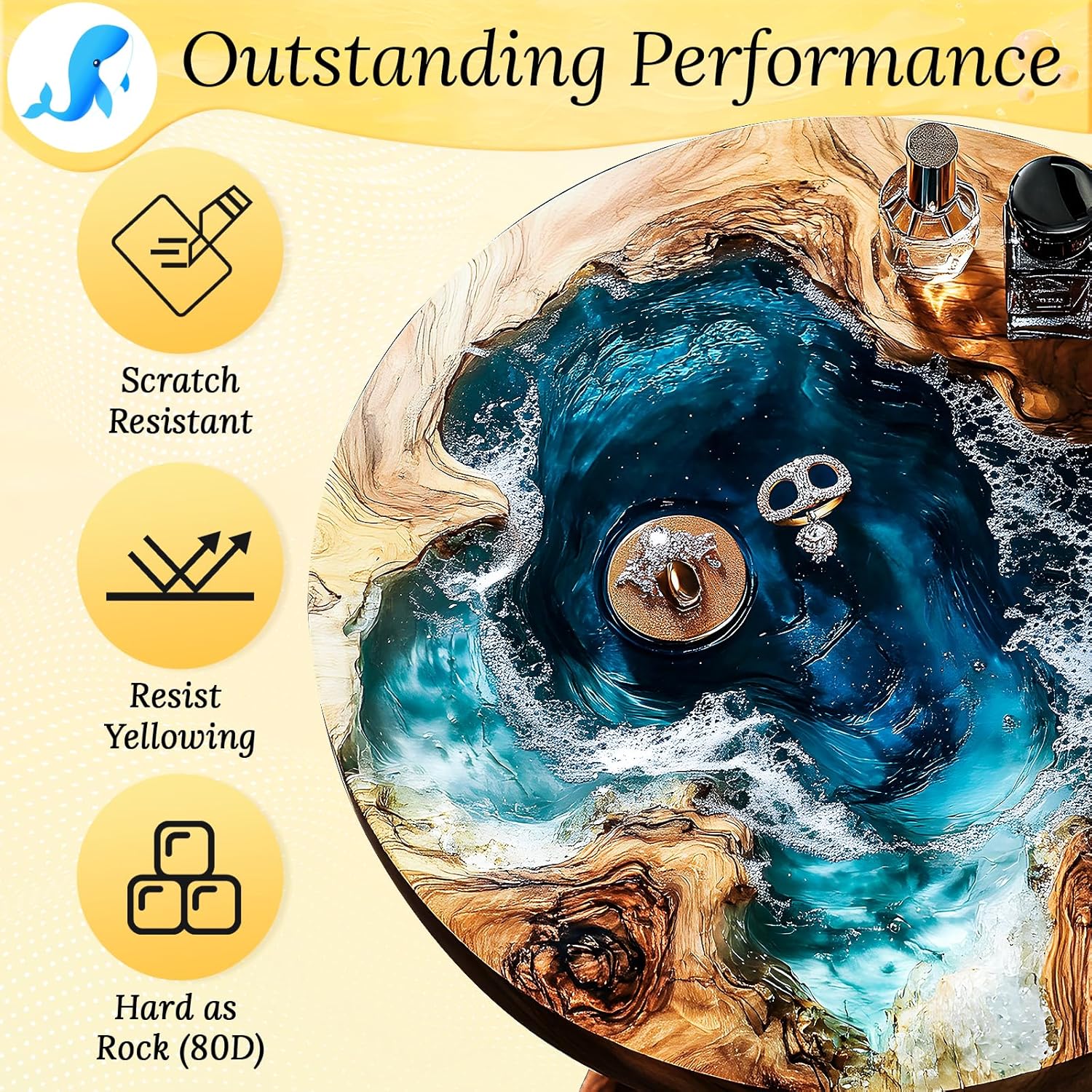 - Crystal Clear & High Gloss: The clear epoxy resin provides a crystal-clear look with a high gloss, mirror-like finish. It enhances the details of your creations and offers a durable, non-yellowing surface with a hardness rating of up to 80.